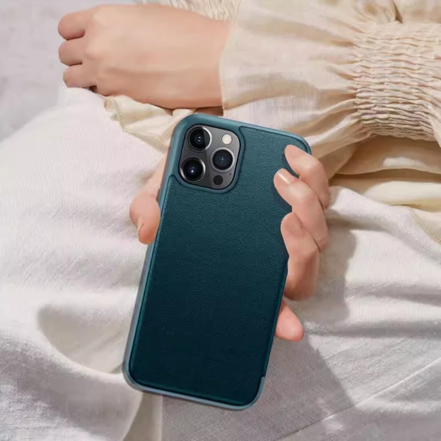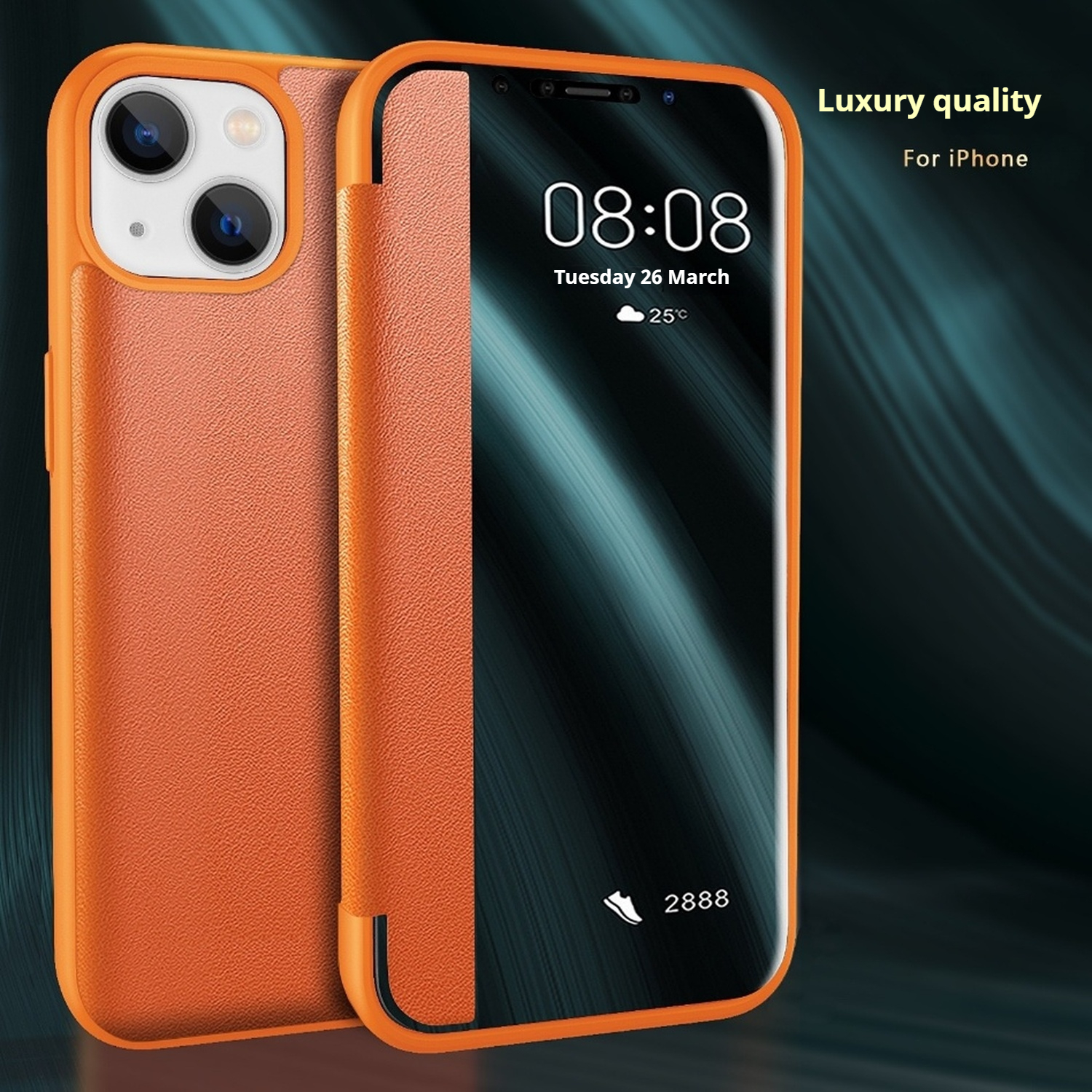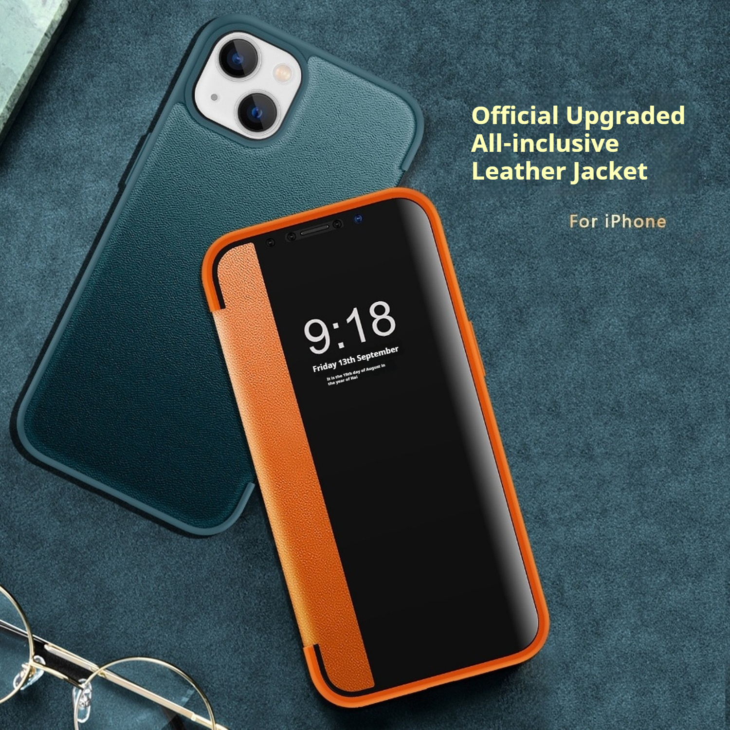 Plain leather side window flip phone case for iPhone